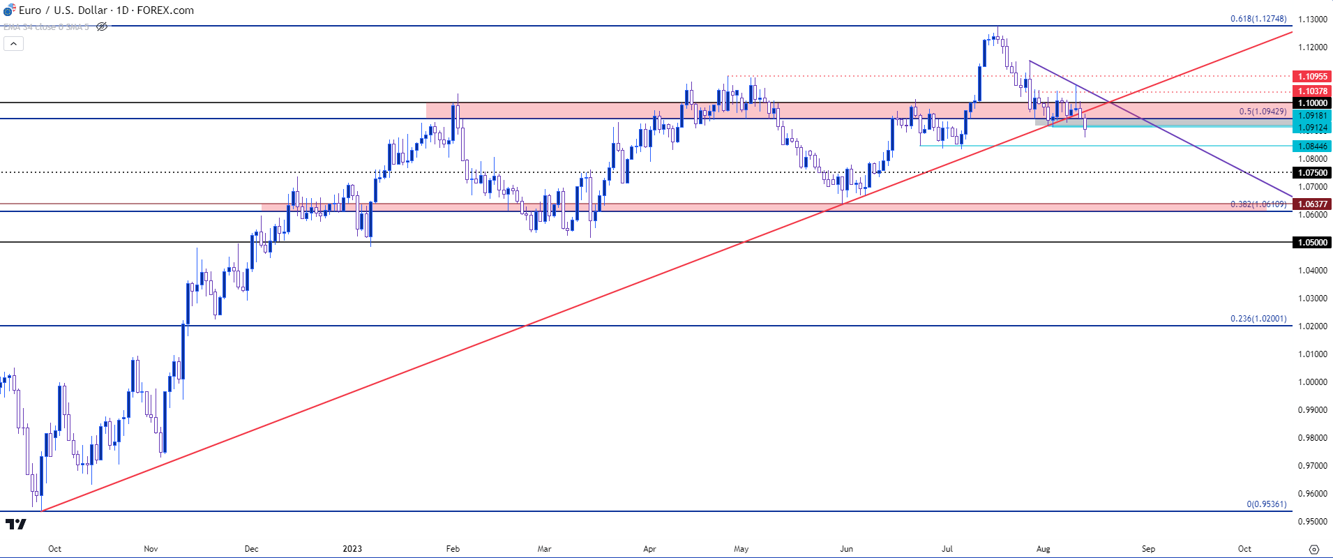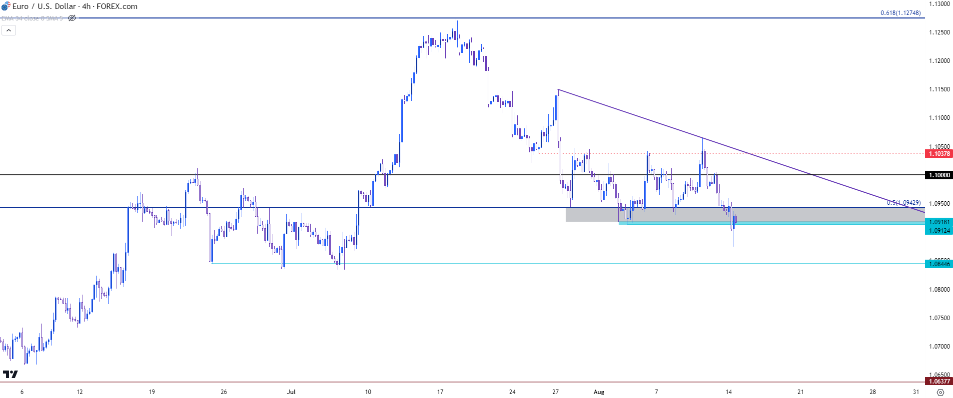 图表由James Stanley绘制,Tradingview上的欧元/美元