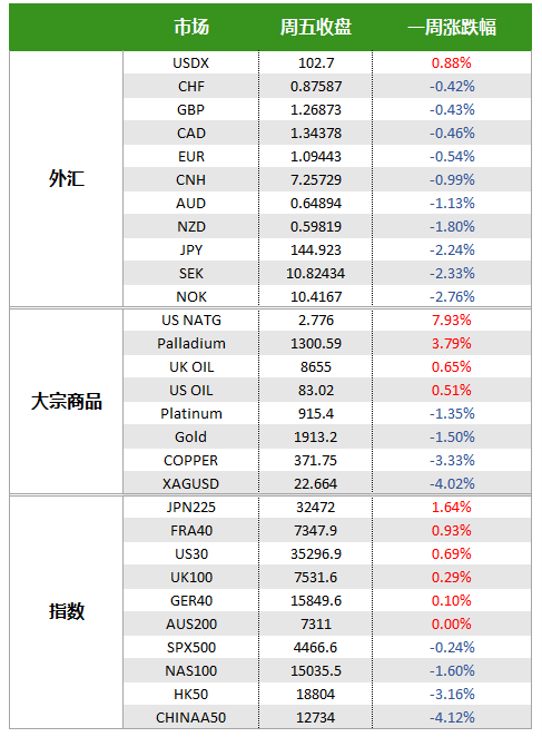 非美货币上周全军覆没,美/日升至145接近前高,欧元、澳元、加元等连续四周下跌。