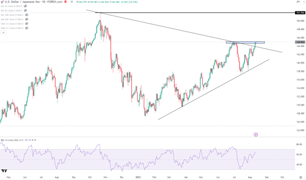 USDJPY一周隐含波动率为8.1%,暗示汇价本周可能的波动范围在143.255-146.591之间。