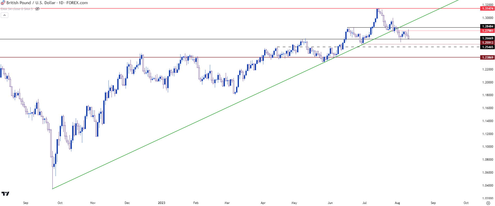 图表由James Stanley绘制,Tradingview上的英镑/美元