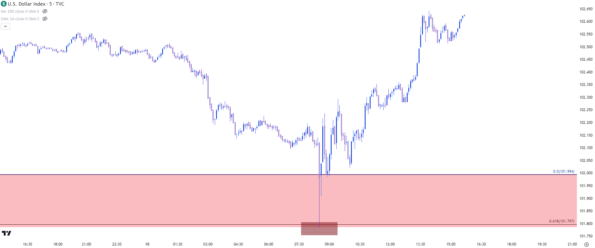 美元-DXY 5分钟图(仅供参考,不适用于FOREX.com平台)