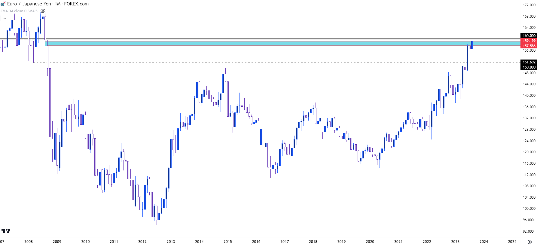 图表由James Stanley绘制,在Tradingview上的欧元/日元