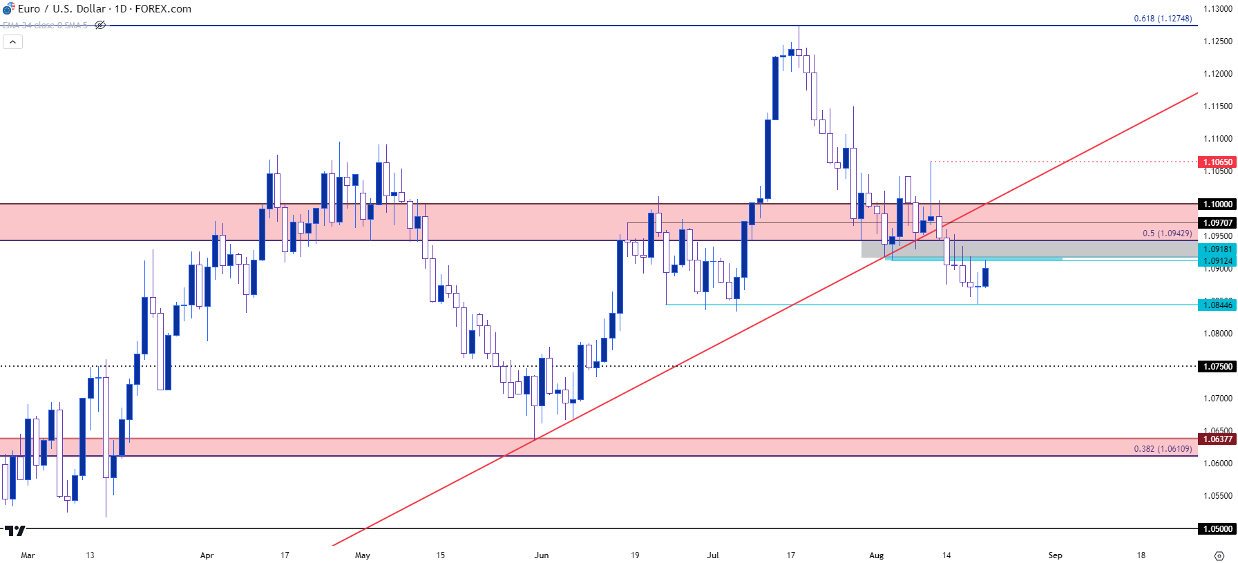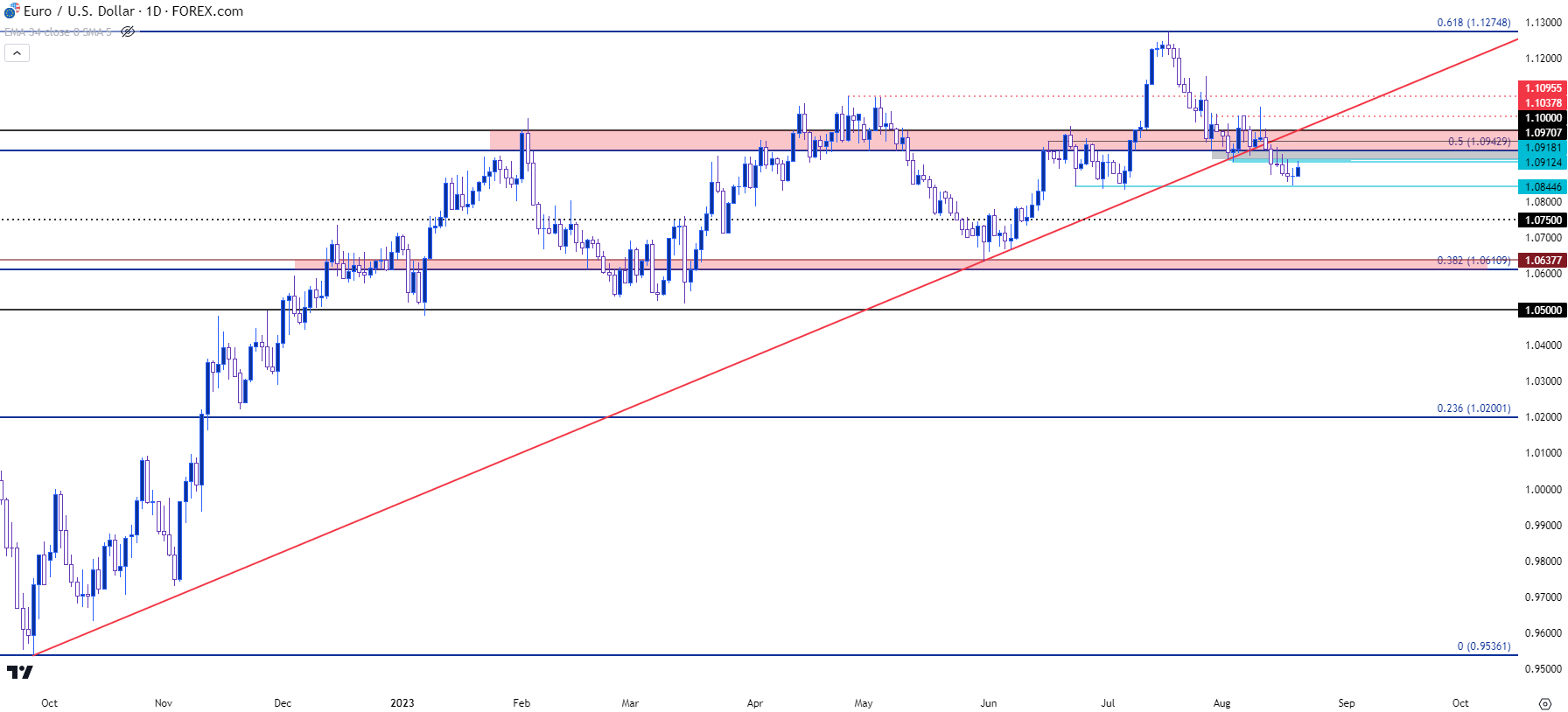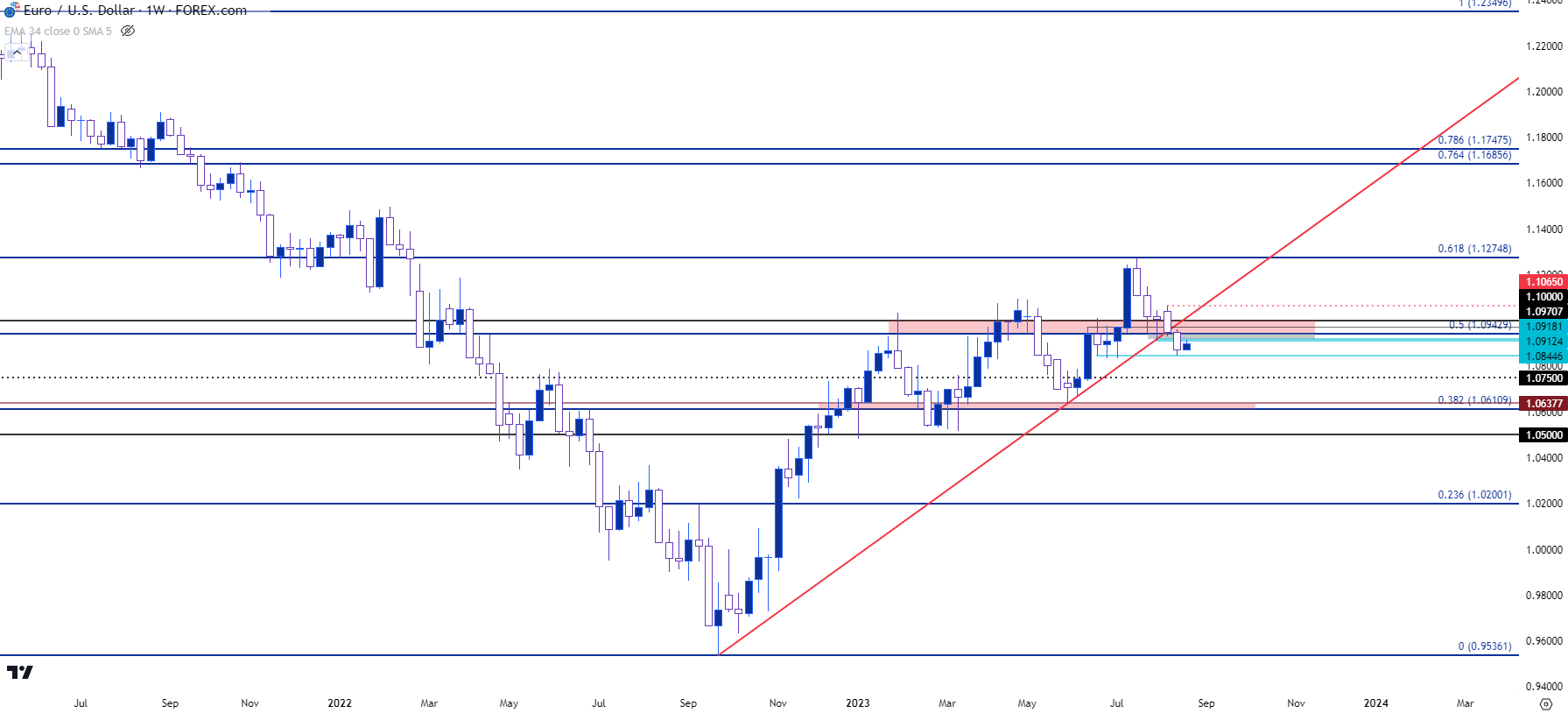 图表由James Stanley绘制,Tradingview上的欧元/美元